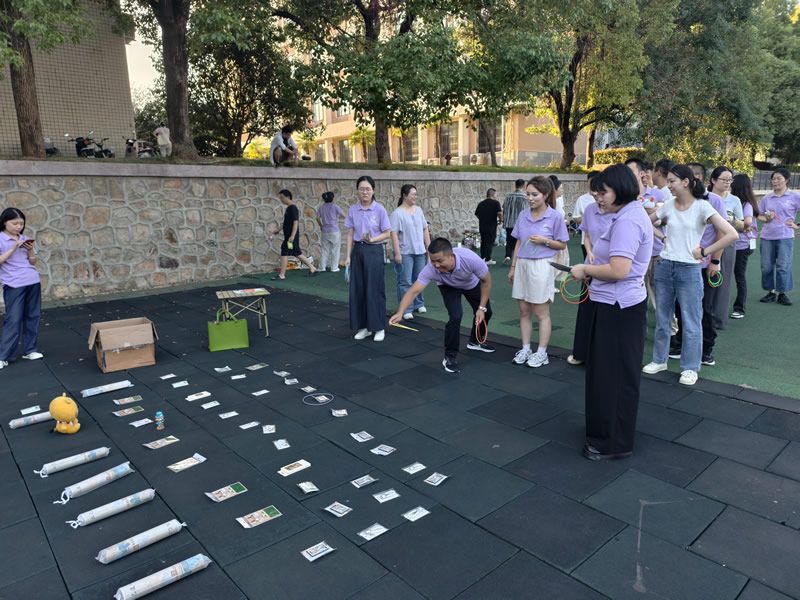 随后,师生们一同前往操场,趣味运动会正式拉开帷幕。活动设置了踢毽子、趣味沙包、趣味足球、趣味篮球、趣味乒乓球、指压板跳绳六大项目,既有考验协调性的“指尖对决”,也有充满欢声笑语的“团队协作”。MPA教育中心杨嬛老师、姜庆志老师、杨兵老师与同学们并肩参与,投球时的默契配合、踢毽子时的专注投入、沙包投掷时的欢呼呐喊,操场之上,青春活力与师生情谊交织,汇成一片欢乐的海洋。